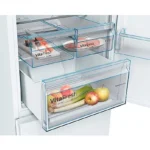 El frigorífico Combi Bosch KGN39VIEA cuenta con bandejas EasyAccess de cristal que son extensibles hasta 15 cm y cuentan con unos topes de seguridad antivuelco, lo que impide que puedan caerse alimentos o recipientes que hay sobre la bandeja. Un plus de flexibilidad en el interior del frigorífico.