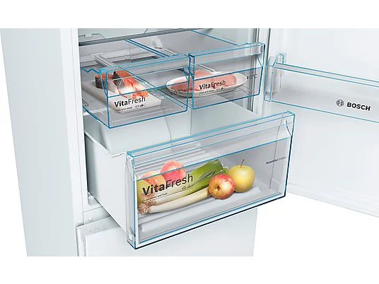 ¿Sois muchos en casa y no os cabe toda la compra en la nevera? Conserva grandes cantidades de alimentos fácilmente con el frigorífico Combi Bosch KGN39VIEA No Frost con una capacidad de 366 litros y una altura de 203 cm.