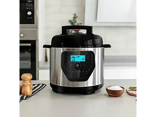 Olla programable con 6 litros de capacidad y báscula. Robot de cocina multifunción que cocina por ti cualquier elaboración en tiempo récord. 19 maneras diferentes de cocinar que te ayudarán a preparar entrantes, arroces, pasta, guisos, estofados, pescado, postres y todas las recetas que imagines. Incorpora báscula para pesar con gran precisión los alimentos depositados en la cubeta con el fin de trabajar con cantidades exactas y obtener resultados excelentes. Innovadora tapa Advance que libera la presión de la forma más cómoda evitando salpicaduras. Gracias a su tapa abatible podrás remover y servir evitando manchas en la cocina. Cuenta con una cubeta Excelsior extremadamente antiadherente que logra resultados óptimos en cualquier receta. Programable 24 horas para que disfrutes de la comida lista al llegar a casa. Disfruta de comidas en familia gracias a su gran capacidad de 6 litros. Modo Eco para ahorrar hasta un 50 % de energía durante su cocinado. Cocina turbo, a presión, al vapor, guiso, fuego lento, escalfar, confitar, fermentar, pan, postre, arroz, pasta, plancha, sofreír, freír y horno. Sistema inteligente GMCore que adapta la cocción de cada elaboración según la cantidad de alimentos, ya sea para una ración o doce raciones. Incluye un completo recetario y acceso a la comunidad social interactiva y a todas las recetas nuevas semanales de Cecotec.